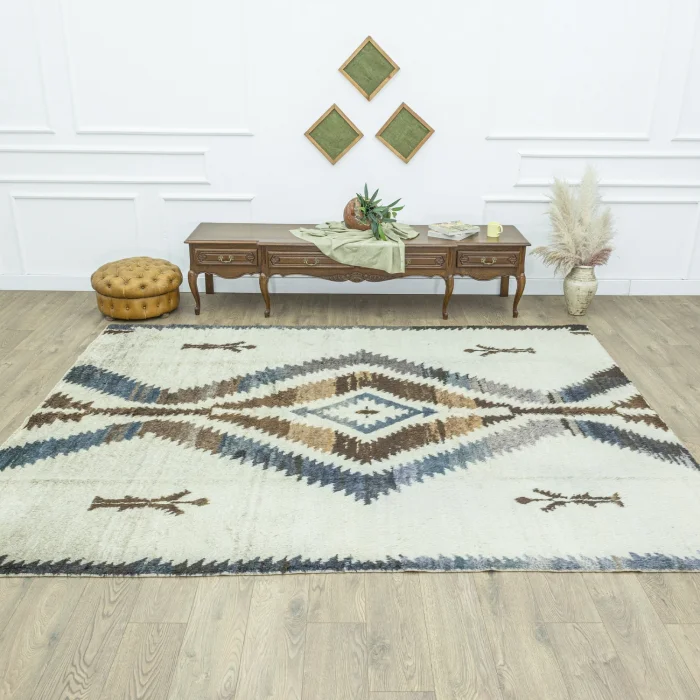 With their flashy and aesthetic designs, our Soho Antiq carpet models will add a new atmosphere to your living space! Our long-lasting carpet model consists entirely of wool and is woven with a special hand weaving technique. This carpet, which we produce with the skills that make the carpet model special and ensure that it maintains its quality over the years, has a thickness of 1 to 3 cm and its length is 242 x 314  cm. The main color of the carpet you choose among the carpet models with many color options is cream. In addition, other colors found in the carpet design are blue and brown. In Soho Antiq, there are carpets with cultural and traditional characteristics. This carpet model, which has come from the past to the present, bears traces of Anatolian history and has cultural colors and touches, especially from the Uşak region. It is possible to see all these traditional touches in the local uşak carpet pattern on the carpet.