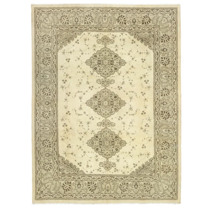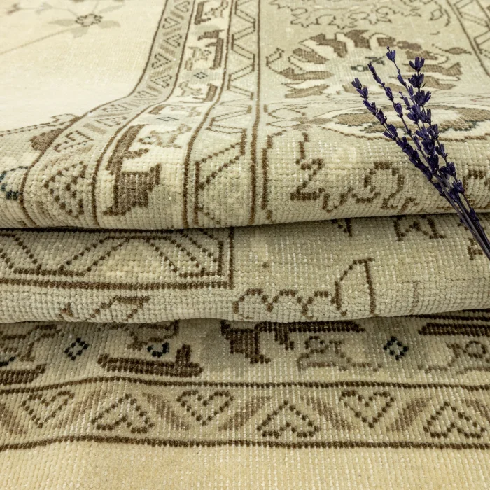 Introduce yourself to the traditional rug models of Soho Antiq that offer ideal options to bring a glamorous and aesthetic touch to your living space. Our long-lasting rugs are designed using the handwoven technique with entirely natural wool and cotton. These special rugs are skillfully produced to maintain their quality even after years and have a thickness ranging from 1 to 3 cm. The dimensions of the rug are 298 x 392 cm. Our rugs come in various color options with light brown as the main color. Additionally, the design incorporates brown tones and several other colors.