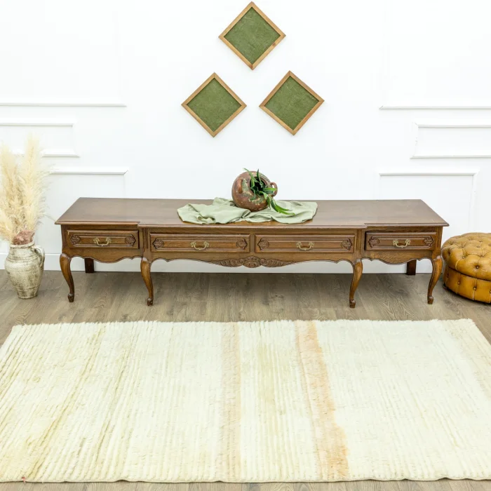 Soho Antiq carpet models offer great options where you can find designs suitable for the concept you want! Made entirely of natural mohair and wool and all hand-woven, these carpets have a thickness of 1 to 3 cm and dimensions are 122 x 255 cm. The main color of the cream carpet, which is among the various color options in our carpet catalog, is the prominent color. In addition, the carpet model includes ecru shades, among other colors. Soho Antiq adds a unique touch to carpet models with its historical and local touches. Their designs, called natural patterns, reflect the spirit of the 1960s, inspired by the Karapınar region. All these special carpets are designed with carefully applied hand weaving techniques.