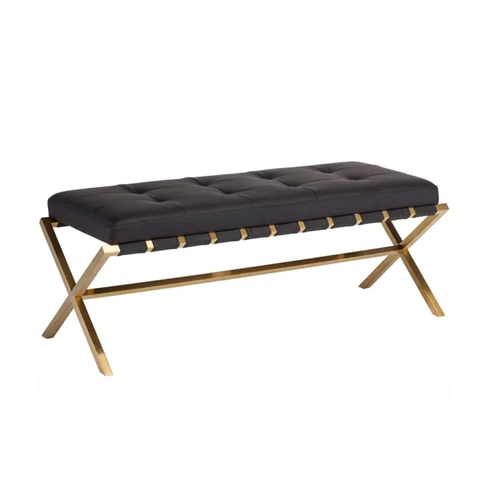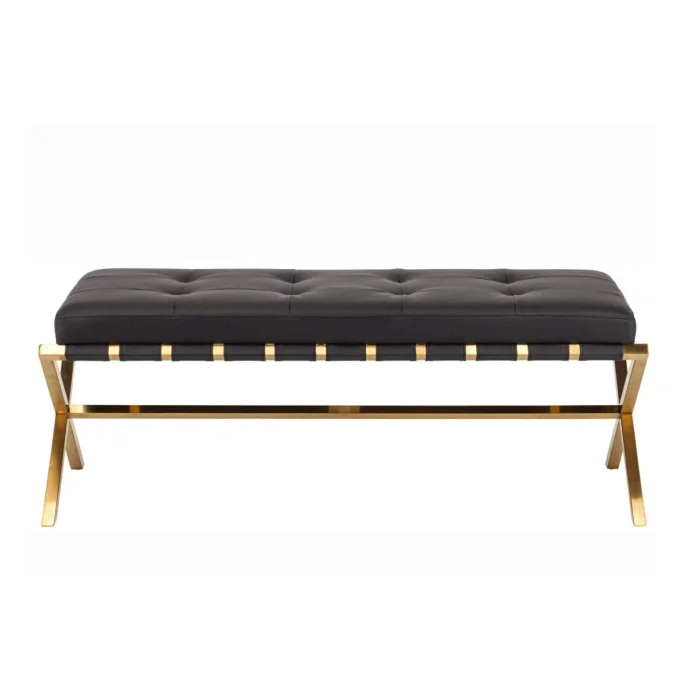 Product: Gold Metal Leather Bench