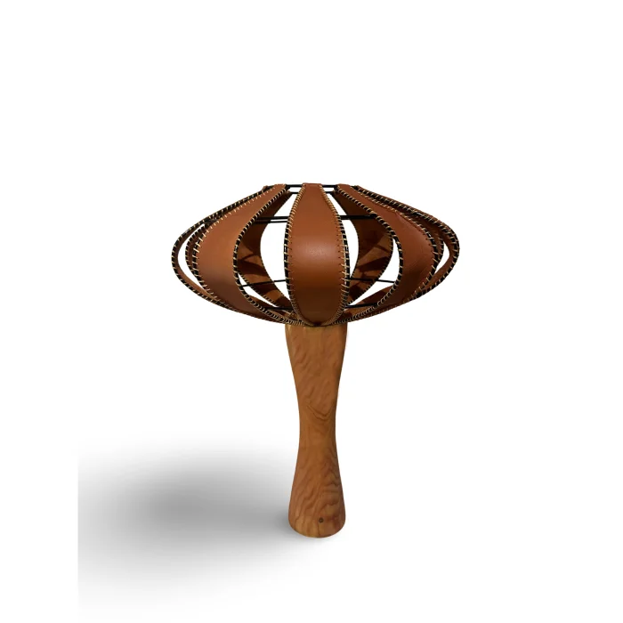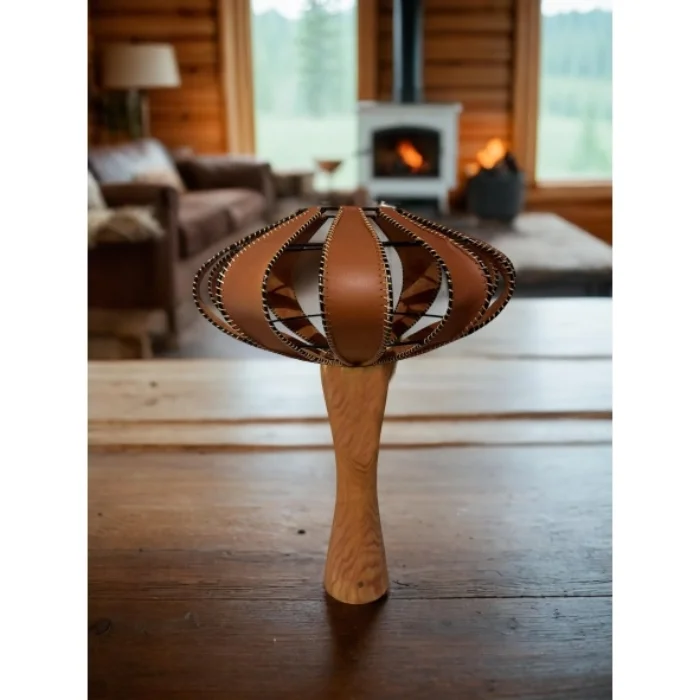 The product lighting hat is genuine leather. It is hand-sewn to an all-metal frame. The foot part is made of natural wood. It measures 35*35*45 cm