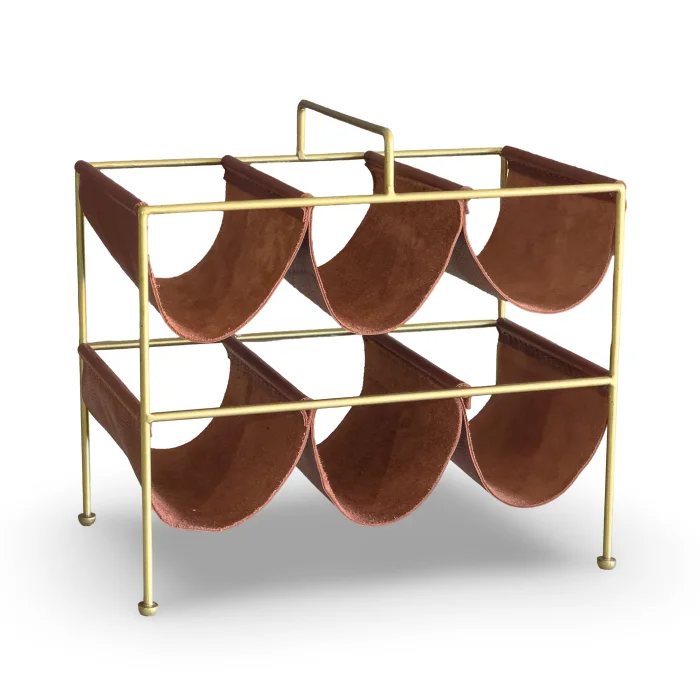 The Genuine Leather Detailed Wine Rack is the perfect accessory designed to store your wines in your home or office in an organized and stylish way. It is made of 100% genuine leather, and thanks to its quality material, it is durable and offers long-lasting use.
