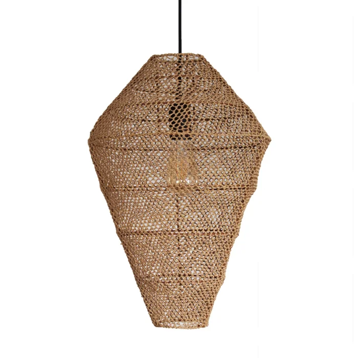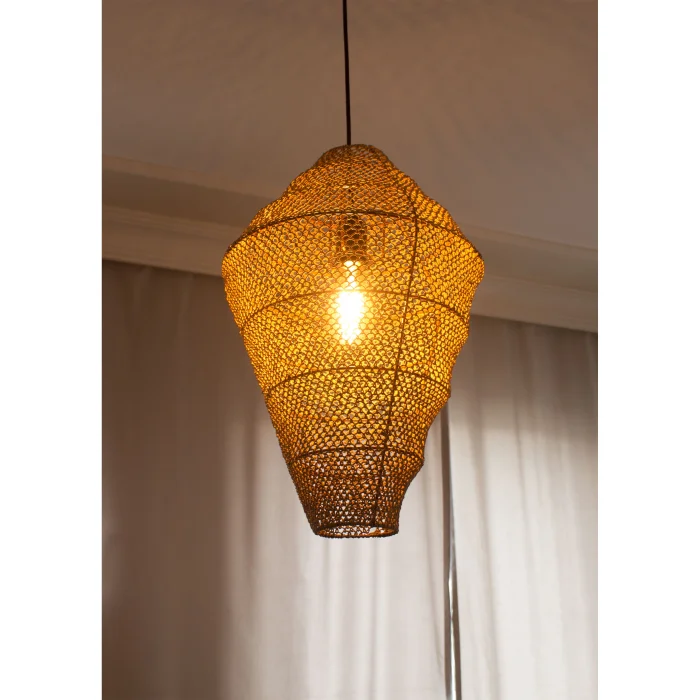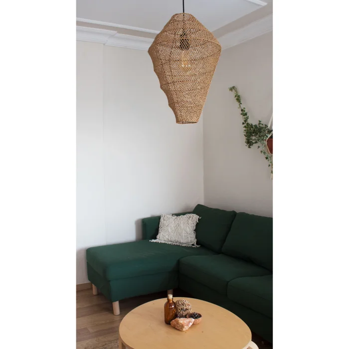 Our pendant lights are a combination of creativity and craftsmanship. Each piece is handcrafted using eco-friendly naturally dyed paper threads with crochet. The result is a precise yet durable lighting solution. The use of paper thread adds a sustainable touch to elegance, making these pieces not only visually captivating but also environmentally conscious. The delicate, organic shapes mimic the beauty of seashells, exuding a soft and warm glow that creates a calm atmosphere. Hang it in your living room for a opulent space, on your dining table for a cozy ambiance, or in your bedroom to create a tranquil relaxation environment. With its neutral tones and calm form, it is a perfect addition to any interior style.