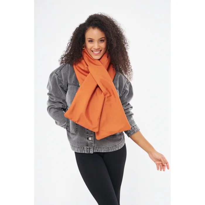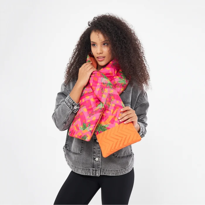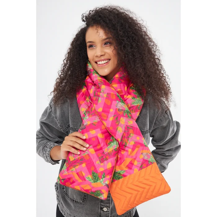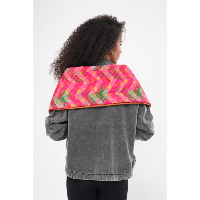 - Double-sided scarf with figgy fabric. - It has waterproof Bondit fabric. - It is designed with fiber quilting on one side and combined plain fabric on the other side. - Patterns are drawn by hand and printed digitally. - Produced in limited edition.