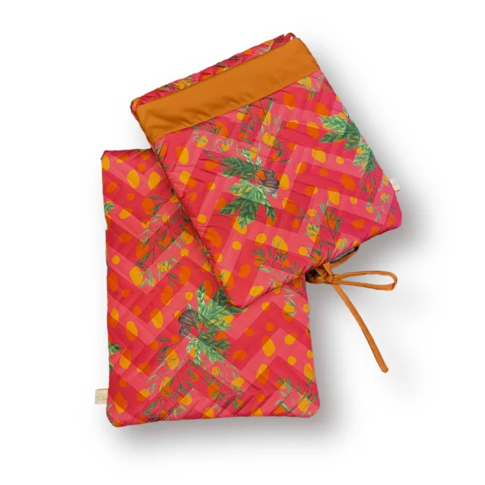 - One side is designed from fiber quilting and one side is designed from combined plain fabric.