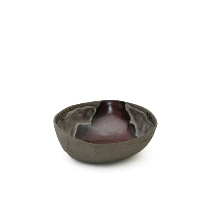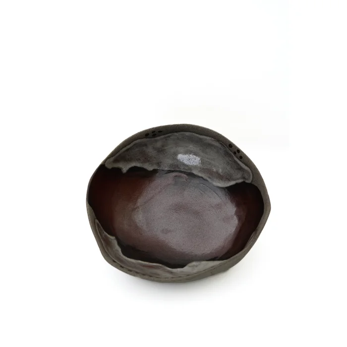 This design piece, featuring dark burgundy and light gray glaze, is designed for both hot and cold dishes. Thanks to its ergonomic and spacious structure, it's ideal for individual or shared meals.