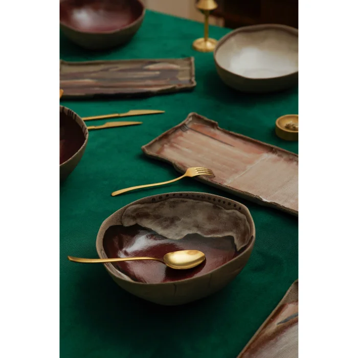 Tableware produced from high-quality European stoneware displays an elegant presence on your dining table with its uniqueness, while offering the durability needed for everyday use. Sou Forms pieces are hand-shaped, dried using natural methods, and fired at 1230 degrees Celsius. They take their final form after approximately 55 hours of firing and cooling process.