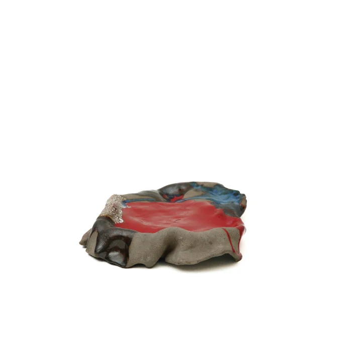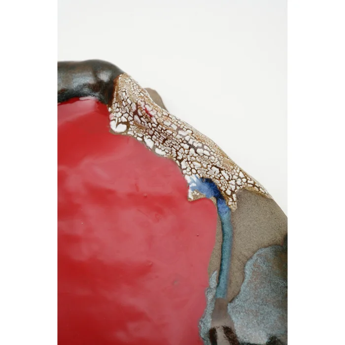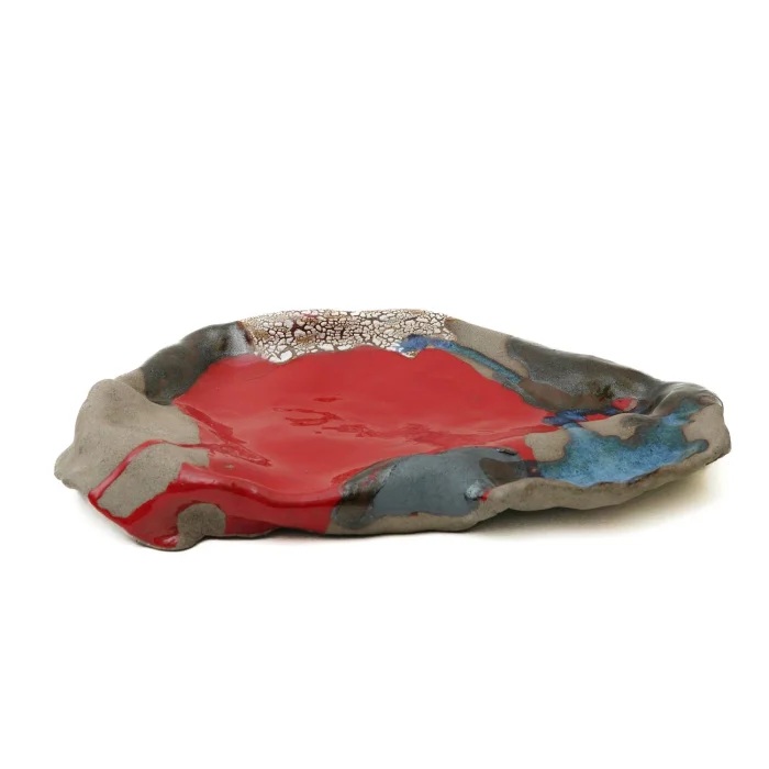 Designed to be the focal point of your table, this piece offers ideal spaces for sauces and spices to accompany your main dish thanks to its wavy and elevated surface. The slight crack on the side formed before firing on purpose as a design element and does not pose a risk of deformation.