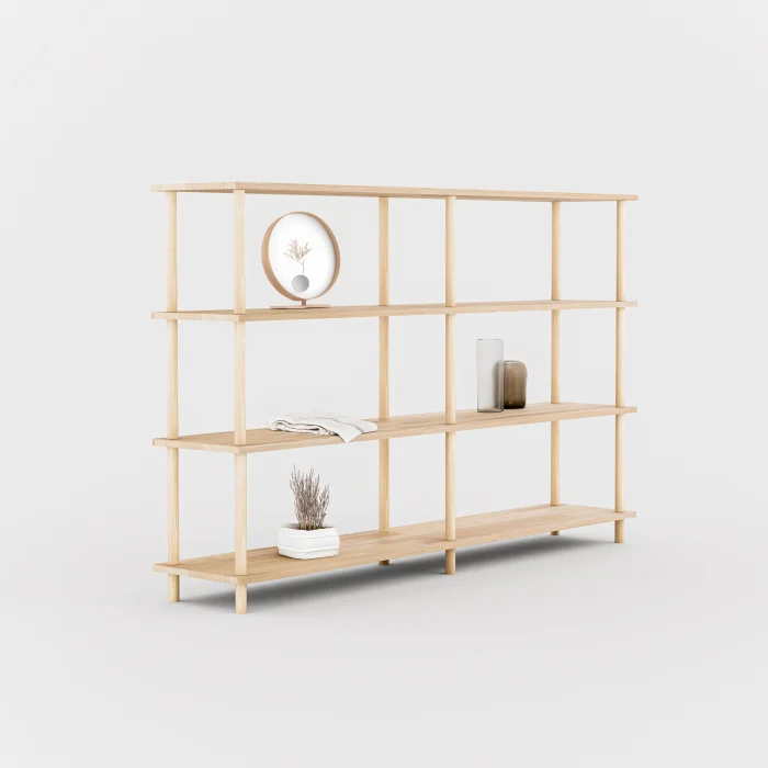 Introducing our minimalist open shelving unit, crafted from solid pine wood with durable finger-jointed construction. Designed by architects for both style and function, this versatile shelf offers ample space for vinyl records, books, home décor, and more. Its clean, open design adds a modern touch to any room, blending Scandinavian elegance with everyday practicality. Effortlessly stylish and easy to assemble with no tools required, this shelving unit brings both sophistication and functionality to your living space. Perfect for those who appreciate simplicity and timeless design.