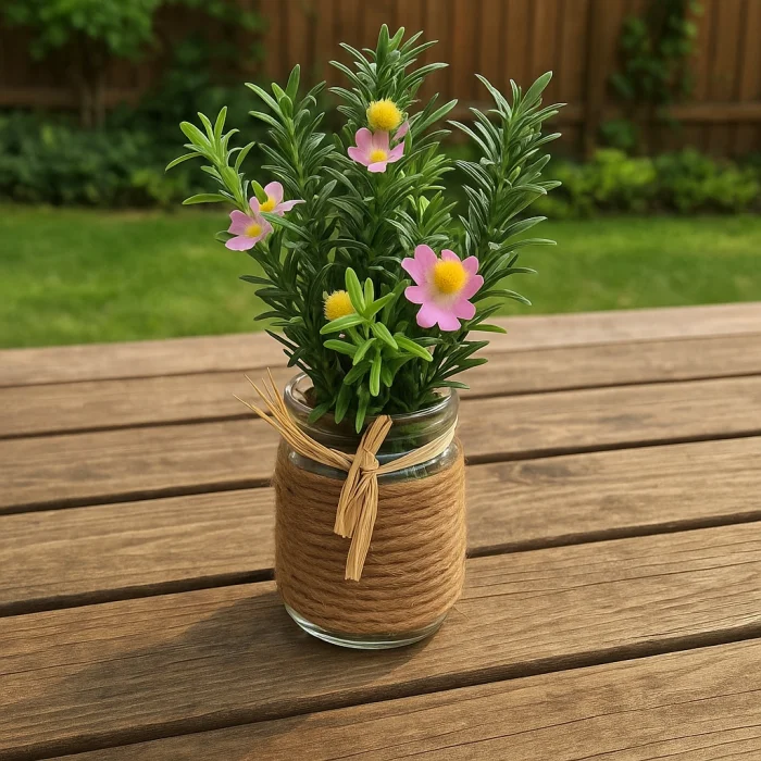 Material: Glass jar, natural jute rope, high quality artificial flower