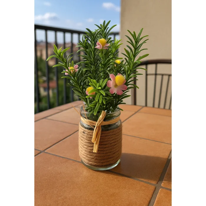 Designed for those who love natural elegance, this rustic glass jar adds a warm atmosphere to the environment with its arrangement, rope details and lively-looking artificial flowers. With its dimensions of 6x20 cm, it stands out as an elegant complementary décor on table tops, shelves or windowsills.