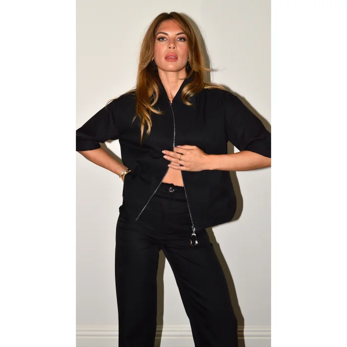 Product: Black Straight Leg Curl Button Pant