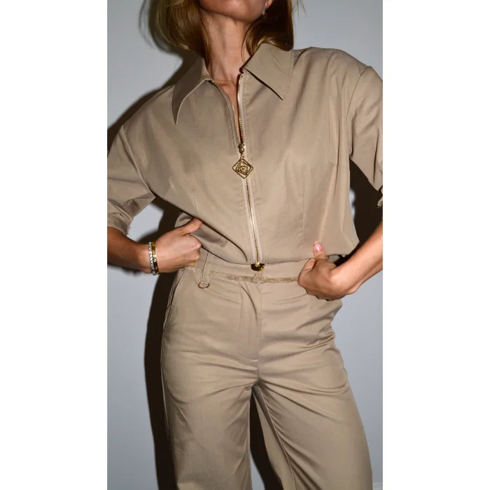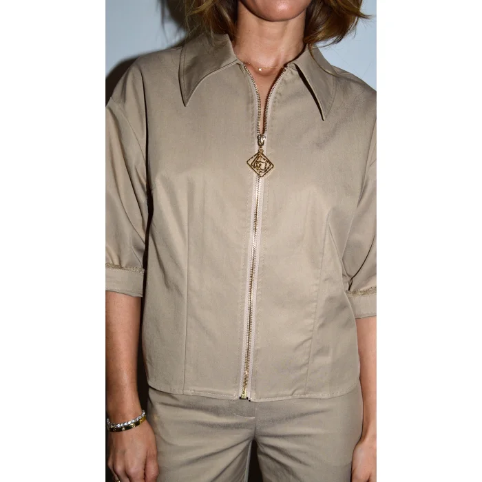 Product: Sand Utility Gold Zipper Shirt
