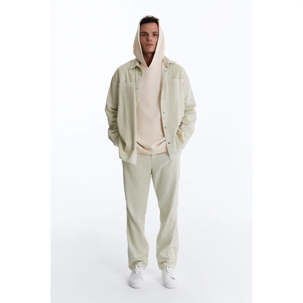 Heavy and thick corduroy fabric is perfect for keeping you warm in autumn. Shirt collar. Shirt pockets on chest. Model is 196 cm tall and wears XL