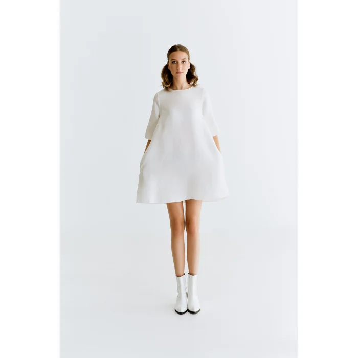 An understated and contemporary take on the essential mini dress. Crafted in an A-shape cut with wide sleeves, the Panama Dress brings playfulness to your wardrobe. A folding detail on the back, side pockets on the sides and seam details on the sleeves give the minimal dress a twist. Pair with chunky boots for a sporty look or with heels for occasion-wear. Wide line dress in comfortable shape. Model is 177 cm tall and wears XS