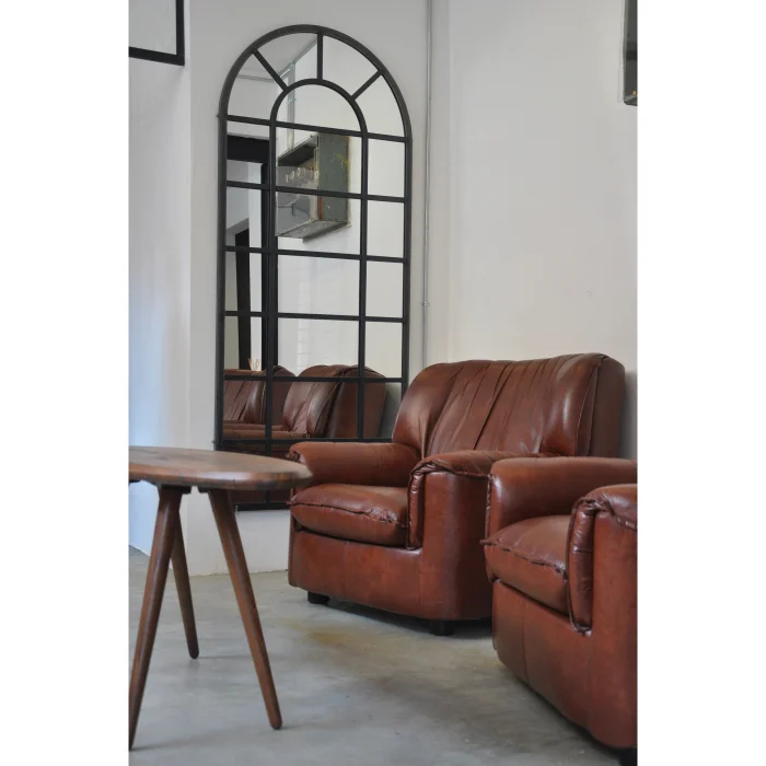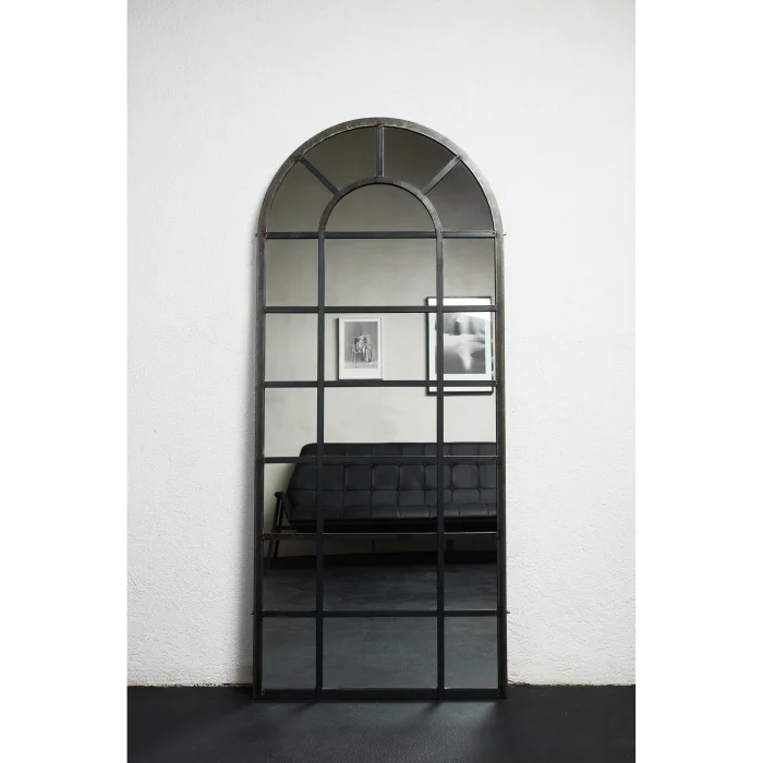 FULL-LENGTH IRON MIRROR IN ARC FORM.
