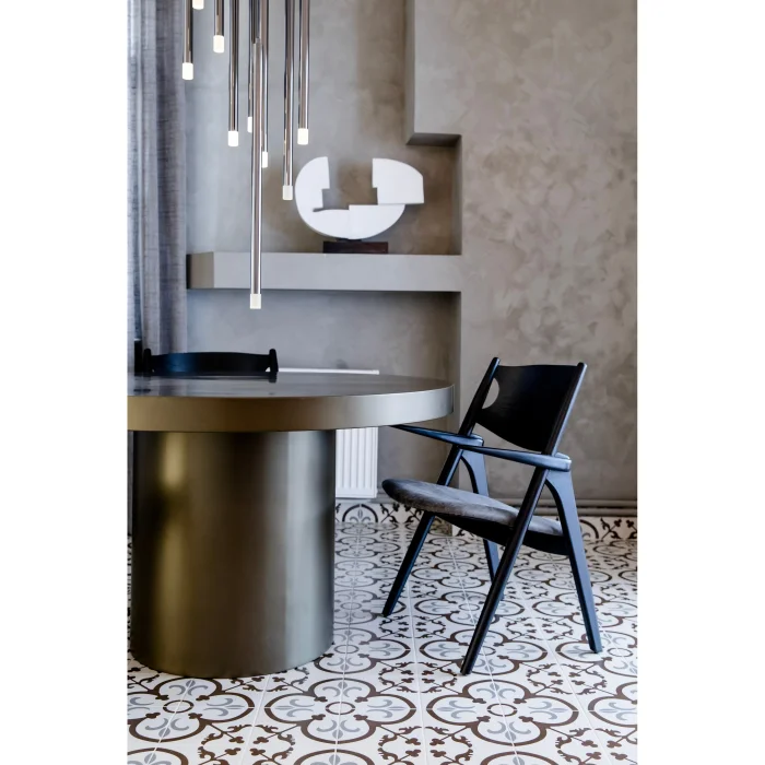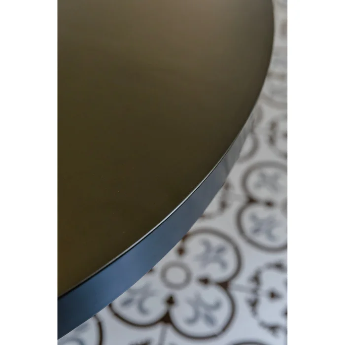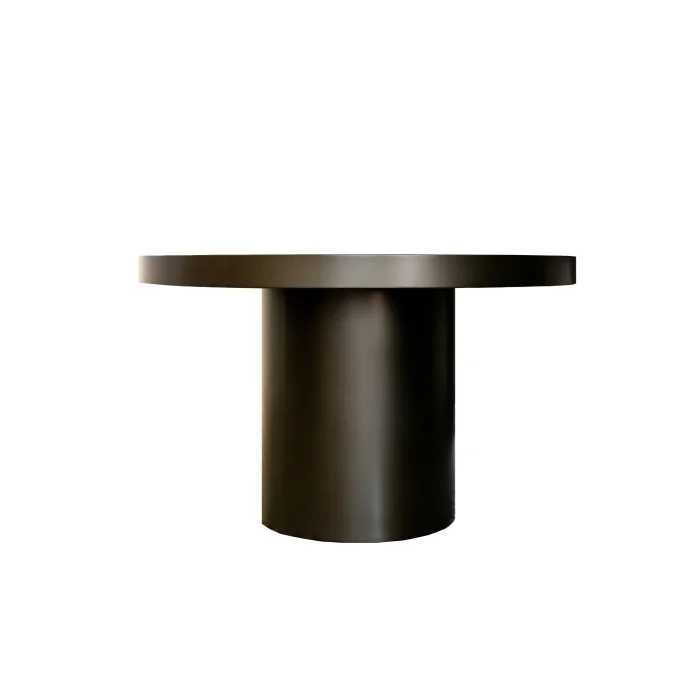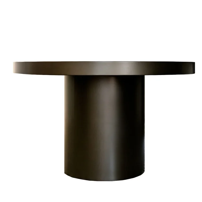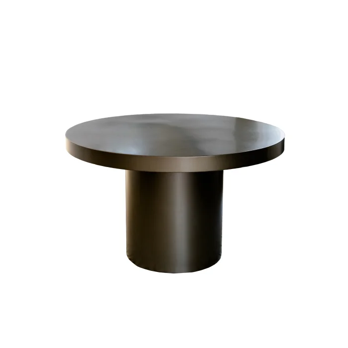 ROUND BENDED METAL, SPECIAL SERIES DINING TABLE WITH MONOBLOCK LEGS AND METALLIZED BRONZE COLOR. IT IS PREPARED WITH HIGH QUALITY HANDCRAFT.