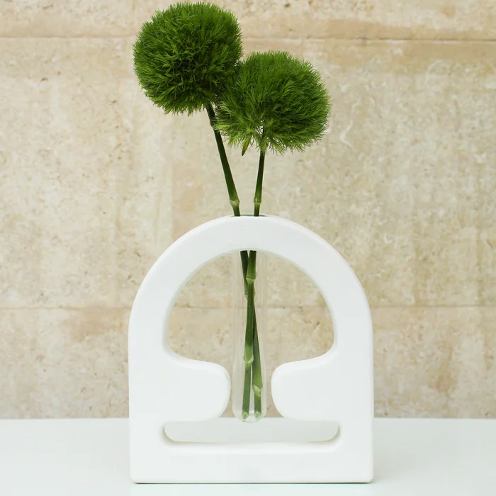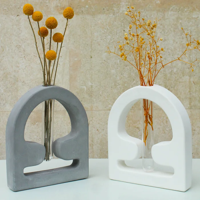 Shroom Vase has a smooth and a matte surface and is manufactured using our special water resistant concrete mixture. The tubes shown in the images come with the vase while the flowers do not. Our products are completely handcrafted by Studio Ays. If your product gets stained, clean it as soon as possible using a damp cloth. If left untreated for too long, stains may remain on the product. Our products are not suitable for washing in the dishwasher. Please avoid harsh scrubbing and chemical products when cleaning.
