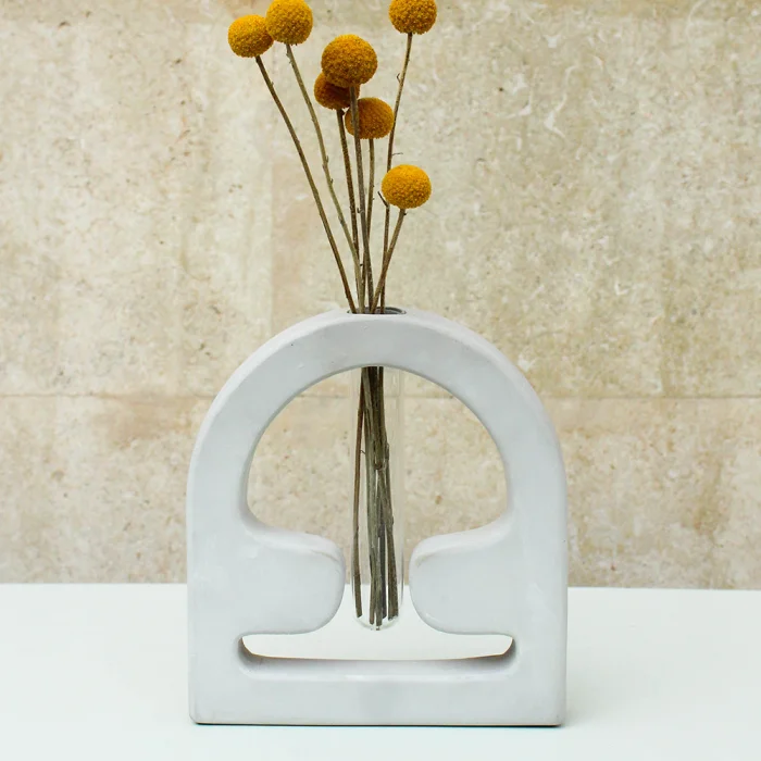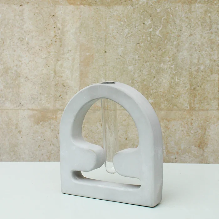 Shroom Vase has a smooth and a matte surface and is manufactured using our special water resistant concrete mixture. The tubes shown in the images come with the vase while the flowers do not. Our products are completely handcrafted by Studio Ays. If your product gets stained, clean it as soon as possible using a damp cloth. If left untreated for too long, stains may remain on the product. Our products are not suitable for washing in the dishwasher. Please avoid harsh scrubbing and chemical products when cleaning.