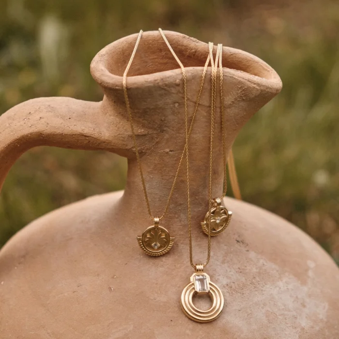 14k Micron Gold Plated on 925 Silver. White Topaz 1.25 ct. Silver Weight: 5.70 g. Size: 1.8x2.5 cm. Chain Length: 45 cm. The product is certified.