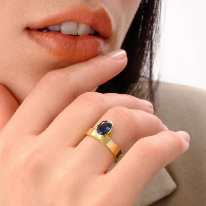 14k Micron Gold Plated on 925 Silver. London Blue Topaz 1.40 ct. Silver Weight: 3.35 g. The product is certified.