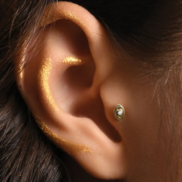 14K Green Gold. Diamond 0.05ct G-VS. Weight: 0.56 g. The product is certified.