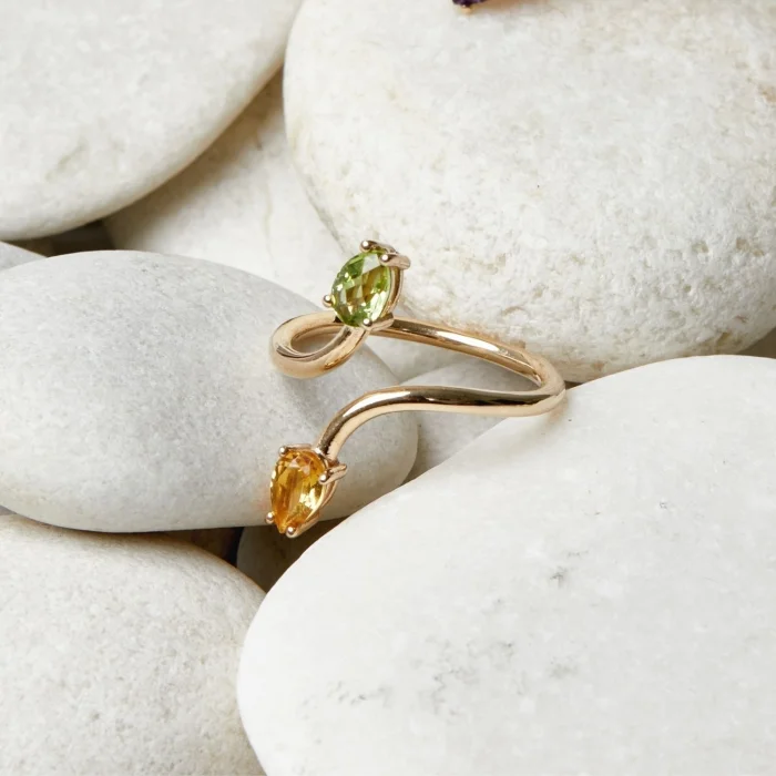 14k Micron Gold Plated on 925 Silver. Citrine 0.35 ct Peridot 0.35 ct. Silver Weight: 2.25 g. The product is certified.