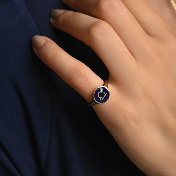 14k Micron Gold Plated on 925 Silver. Navy Enamel. Zircon. Silver Weight: 1.90 g. The product is certified.