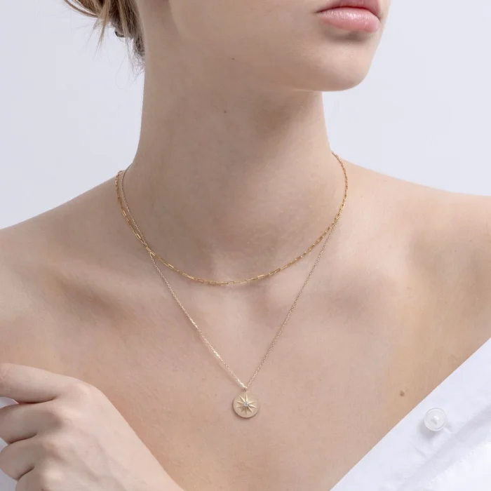 14k Micron Gold Plated on 925 Silver. Zircon Stone. Silver Weight: 2.90 g. Size: 1.5 cm. Chain Length: 45 cm. The product is certified.