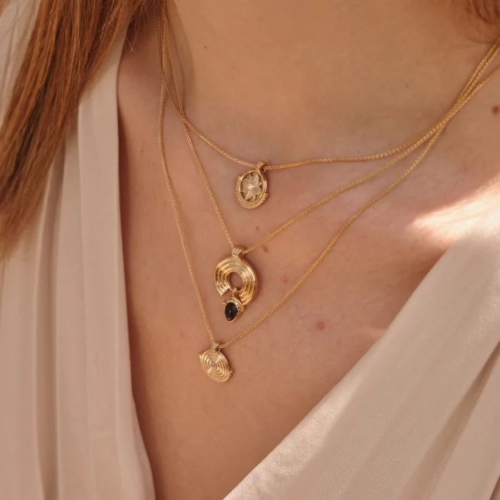 14k Micron Gold Plated on 925 Silver. White Topaz 0.06 ct. Silver Weight: 4.40 g. Size: 1.5 cm. Chain Length: 45 cm. The product is certified.