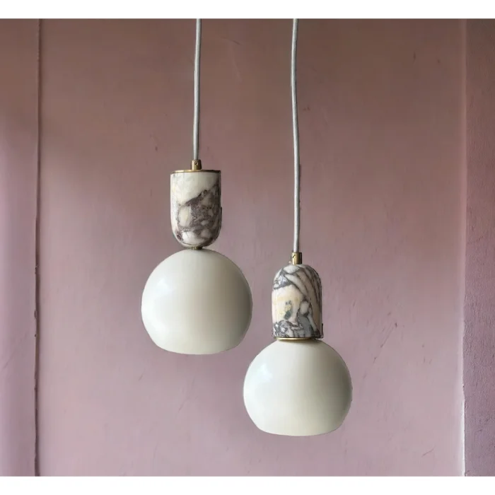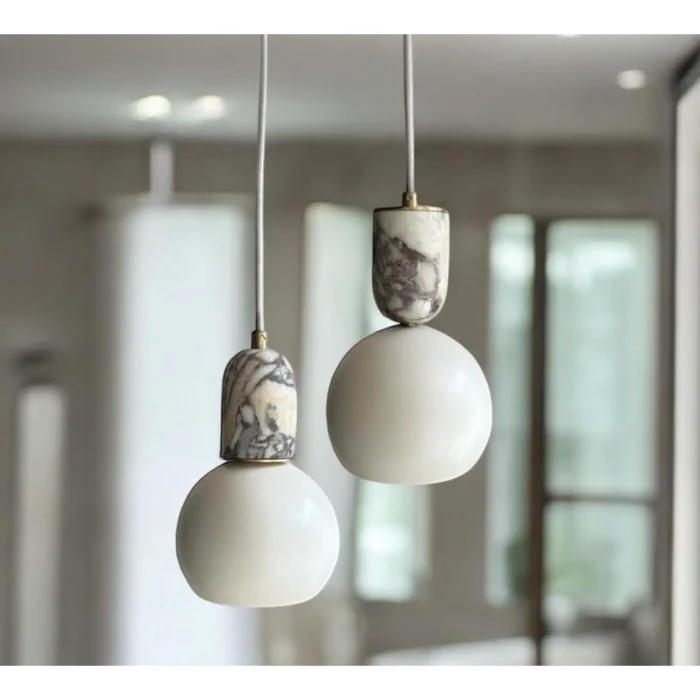 Lucille Pendant stands out as a lighting product that presents the rich colors of marble in a minimalist and stylish design. It provides pleasant lighting in a variety of areas, from headboards to tables and tops of countertops.