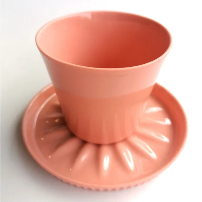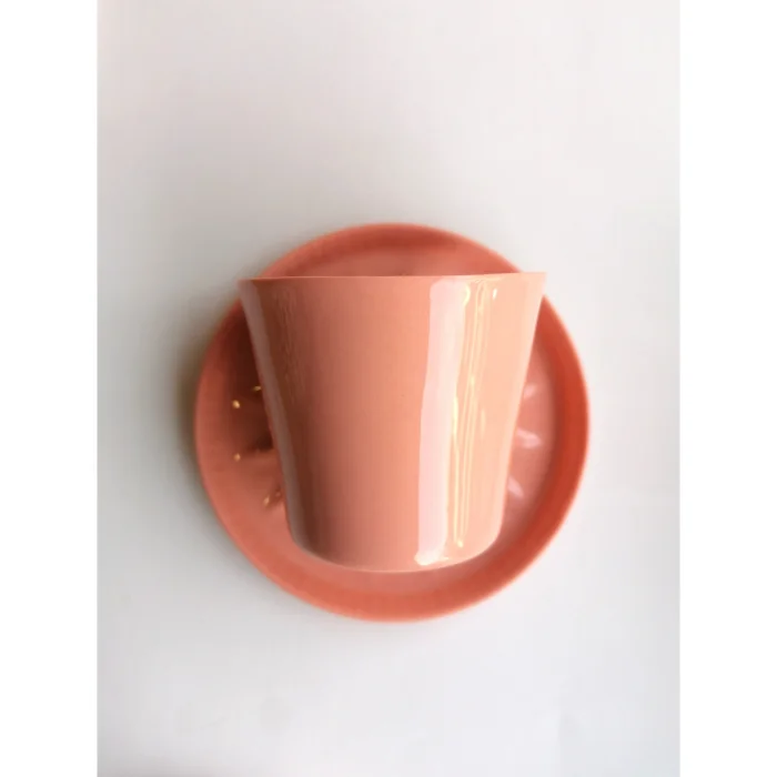 It's handmade fine porcelain. The inner surface of the glass is colored glaze and the outside is unglazed. Each product is hand drawn.