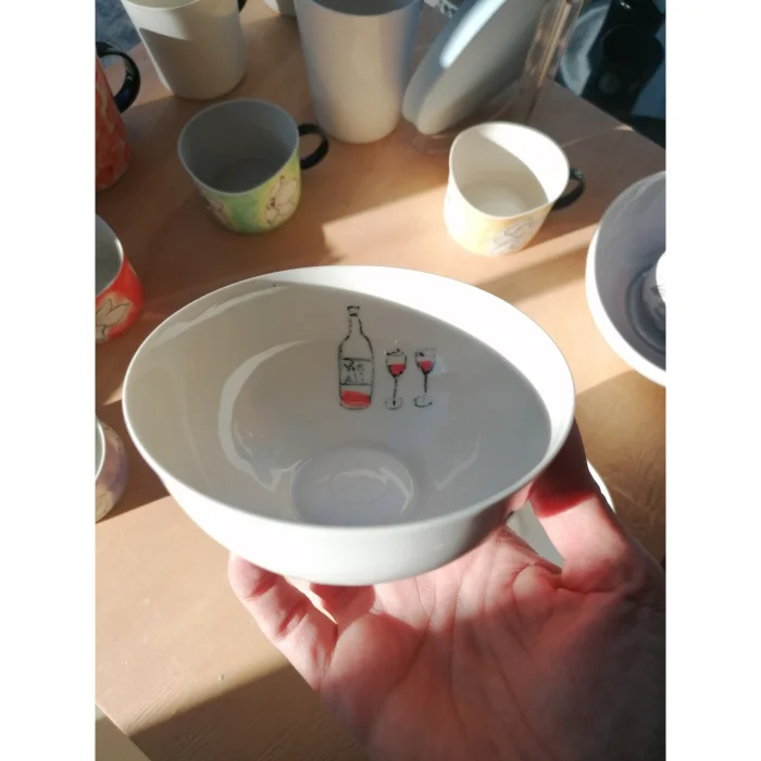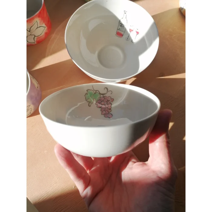 It is handmade fine porcelain with glazed inner and outer surfaces.