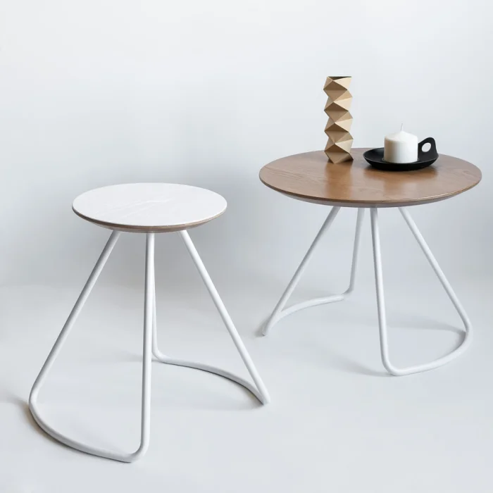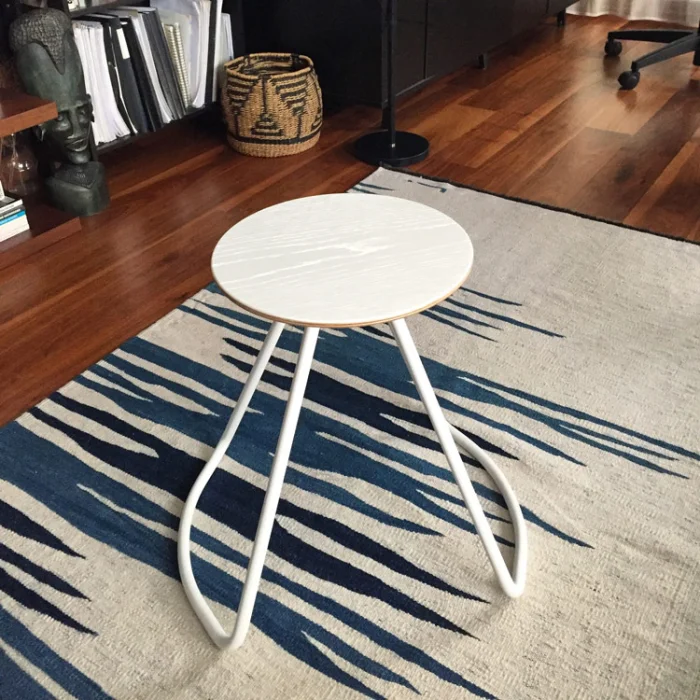 This product can be used as a stool and/or a side table and is handmade by wood and metal artisans. Seating: Oak veneer on birch plywood. Legs: Bent metal tube with electrostatic paint. Designer: Fulden Topaloğlu