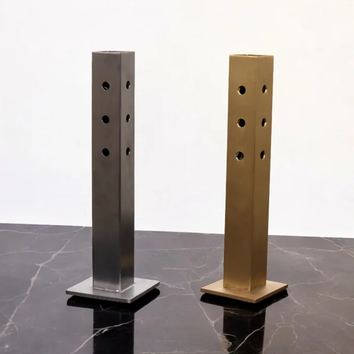A poetic design that offers endless options with colors. A serene reflection of texture, form and craftsmanship. A design that offers its user the possibility of creating a table full of flowers. The product, which has a sculptural appearance with its geometric shape, is made entirely of hand-shaped brass material.