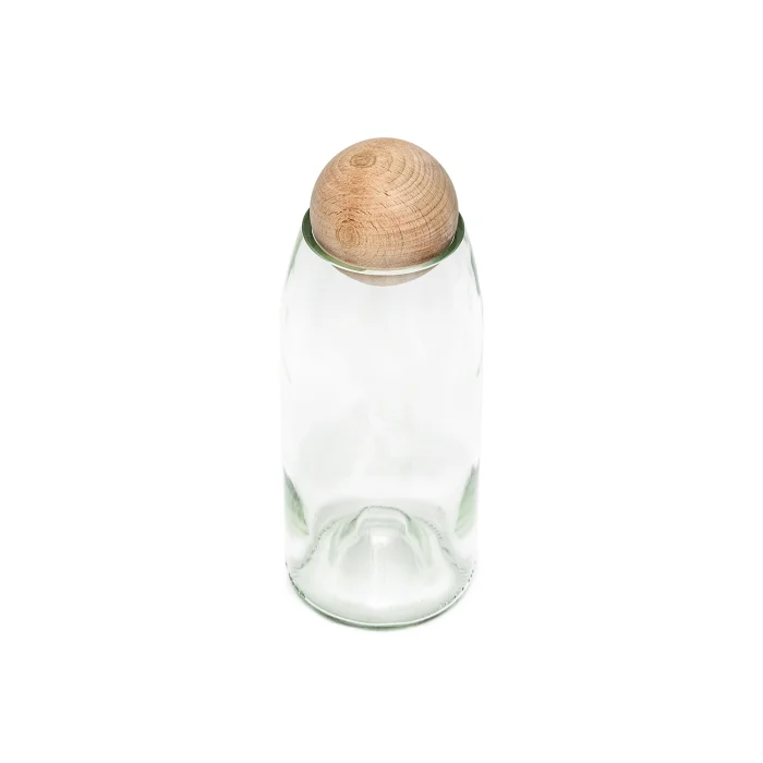 After all the bottles are completely disinfected, they are cut and polished by hand. The Wooden Top Lid is made from 100% beechwood. It is suitable for food use. A label set is also included with the product.