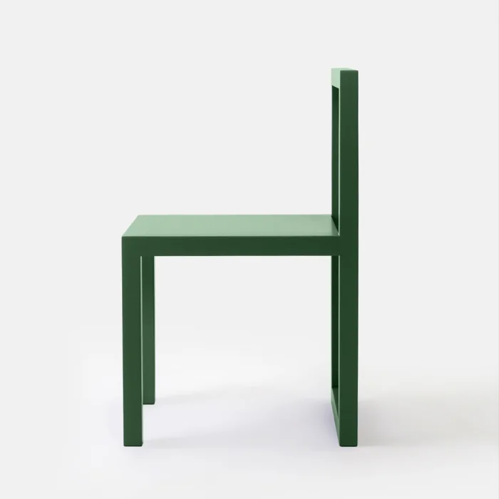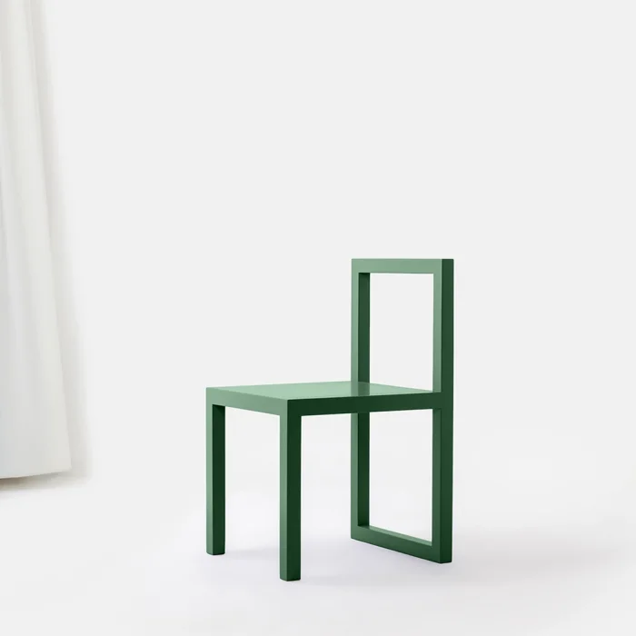 Love Formula Chair interprets a brutalist form with a romantic touch. The backrest and rear legs merge into one another, creating a frame-like silhouette. The gap between the seat and the backrest gives the piece a light, almost floating appearance.