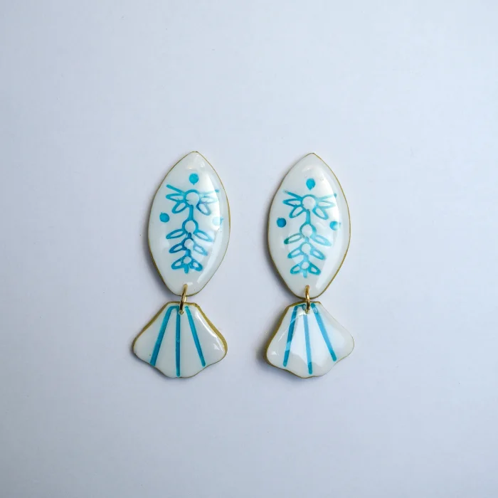 The product is made of polymer clay. Patterns and textures are created by hand. It is coated with epoxy.