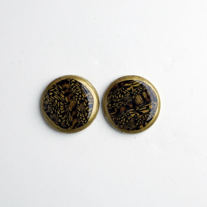 The product is made of polymer clay. Patterns and textures are created by hand. It is covered with epoxy.