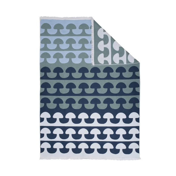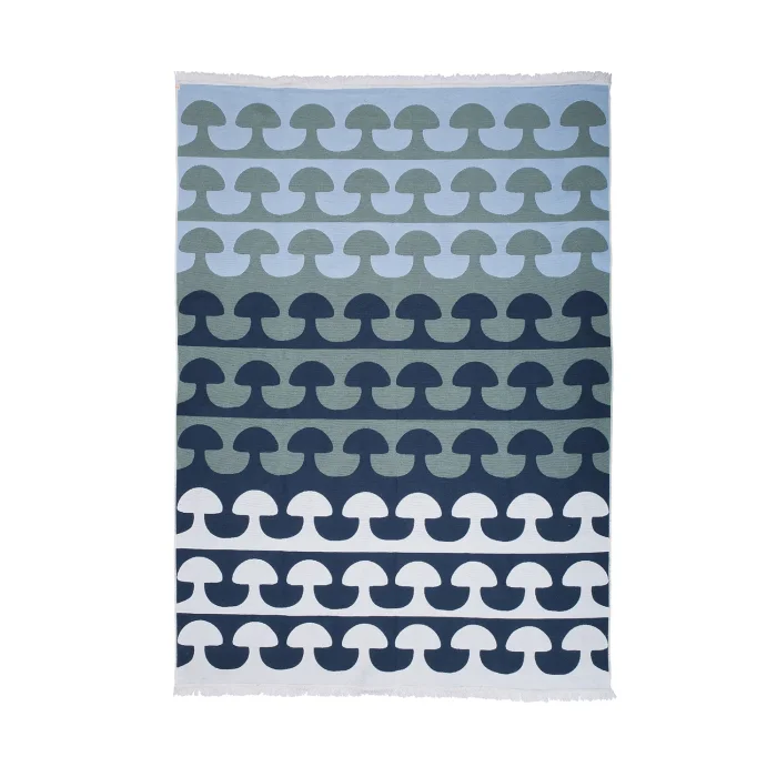 This kilim is designed by Studio Potato and made with recycled cotton fiber. Made on a looming machine, it's woven more tightly compared to hand made kilims and you can use it indoors or outdoors. You can use it with its 2 different sides.