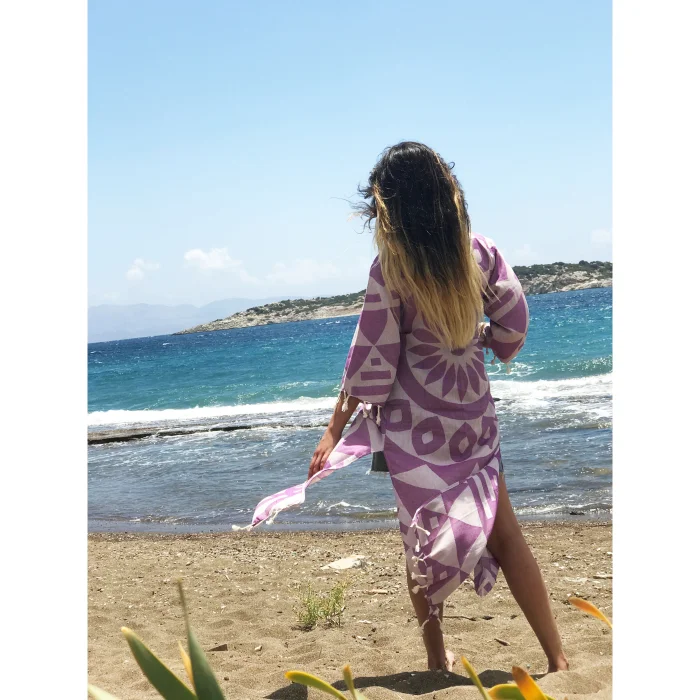 A timeless piece of elegance: This long kimono, crafted from 100% cotton with a jacquard texture, is designed to accompany you all day—from the beach to the city.