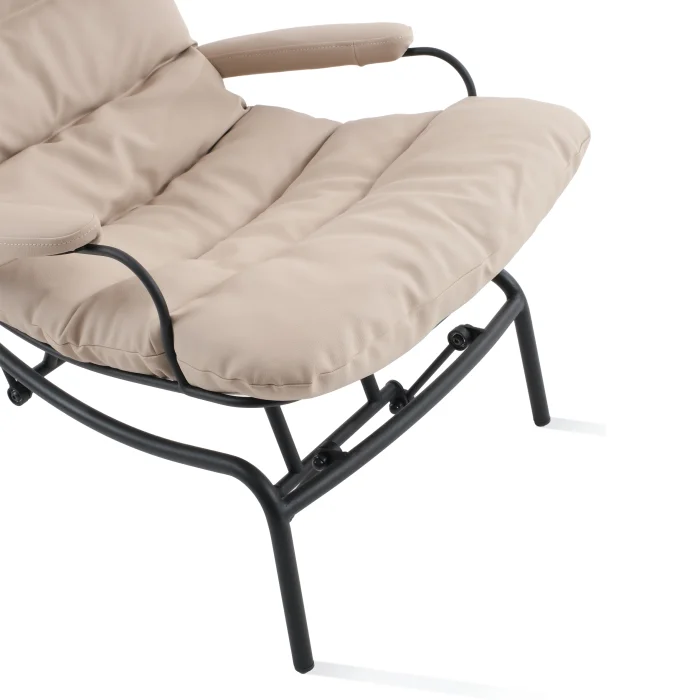 Product Dimensions: Armchair: 75x102 cm h:100 cm Pouf: 47x45 cm h:46 cm Product features: Metal parts are made of solid iron and profile. It is electrostatic powder coated. The fabric is faux leather. It can be easily cleaned. In the upholstery part, 70% bead silicone is used to ensure seating comfort and 30% trim sponge is used to provide resistance to collapse.