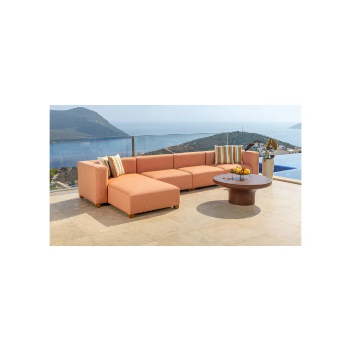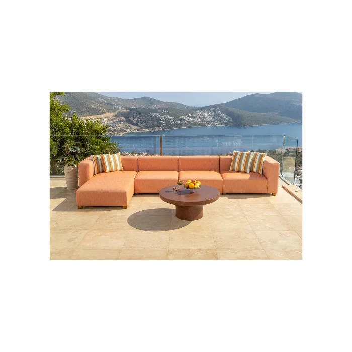 400 x 165 Teak and water contrast endoskeleton Water and UV resistant fabric is used. The coffee table is not included in the set