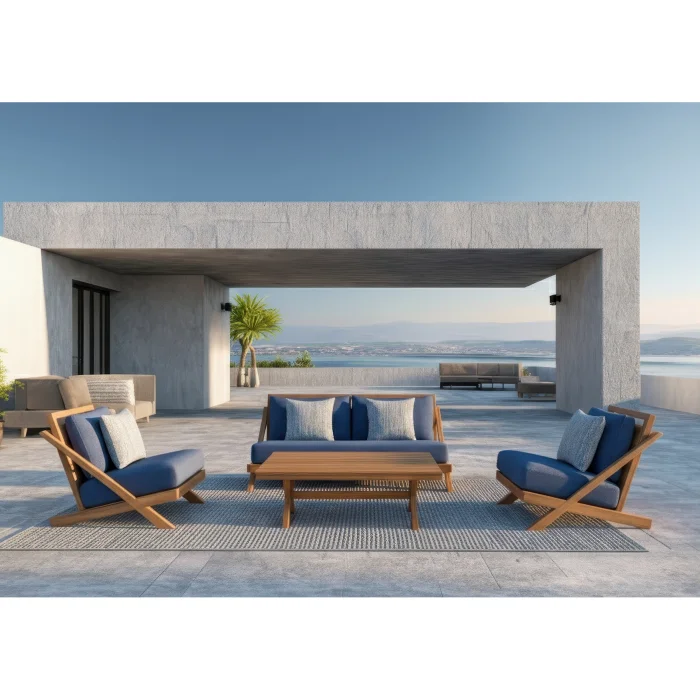 NOAH SOFA 68 cm x 97 cm h: 70 cm It is made of İROKO wood. Natural HAZERAN is used on the back. Water repellent outdoor fabric is used. Decorative accessories in the image are not included in the product.