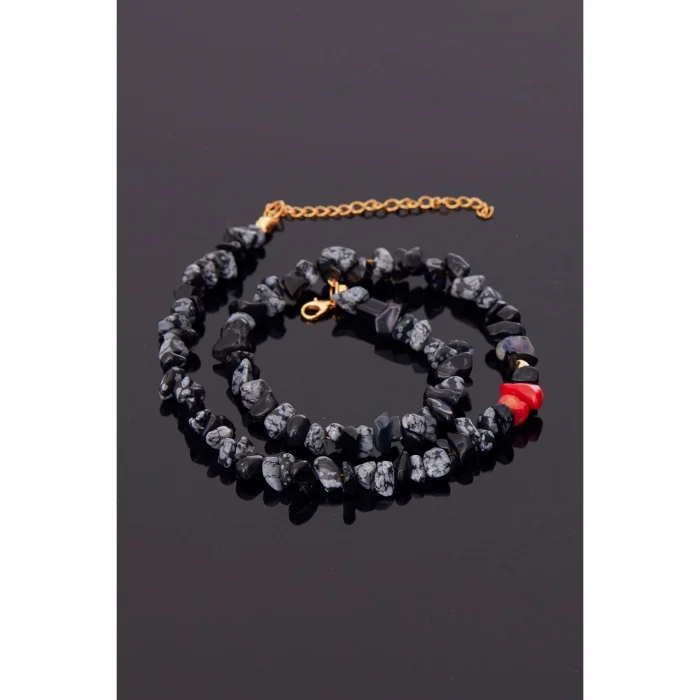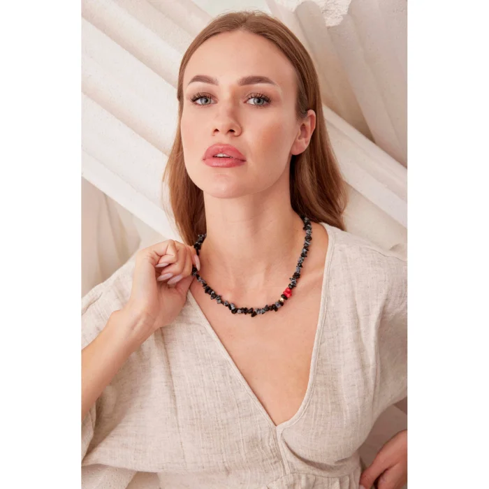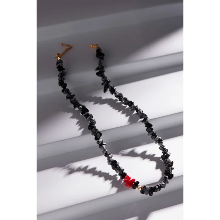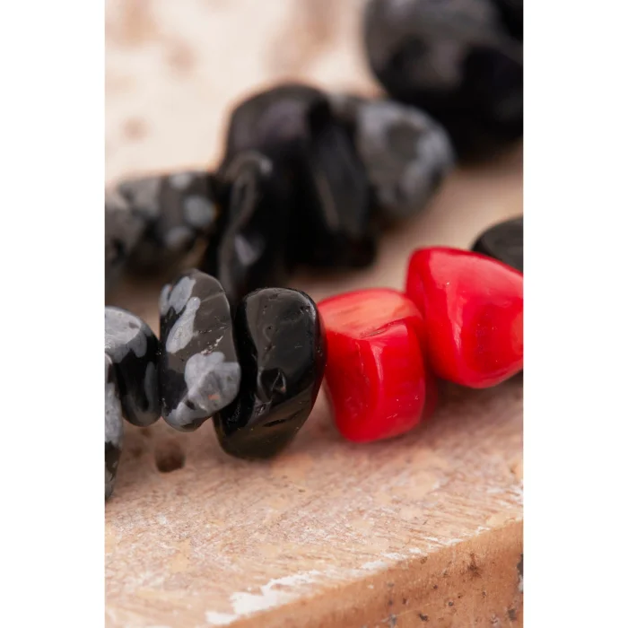 This handmade necklace combines obsidian stone, which provides strong protection, with coral stone, a symbol of passion and energy. With its elegant and unique design, it adds vitality and positivity while repelling negative energies.