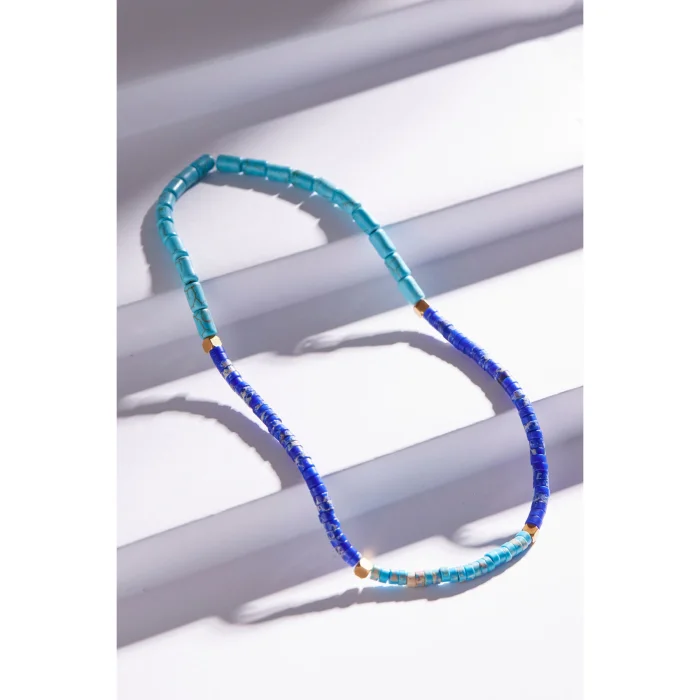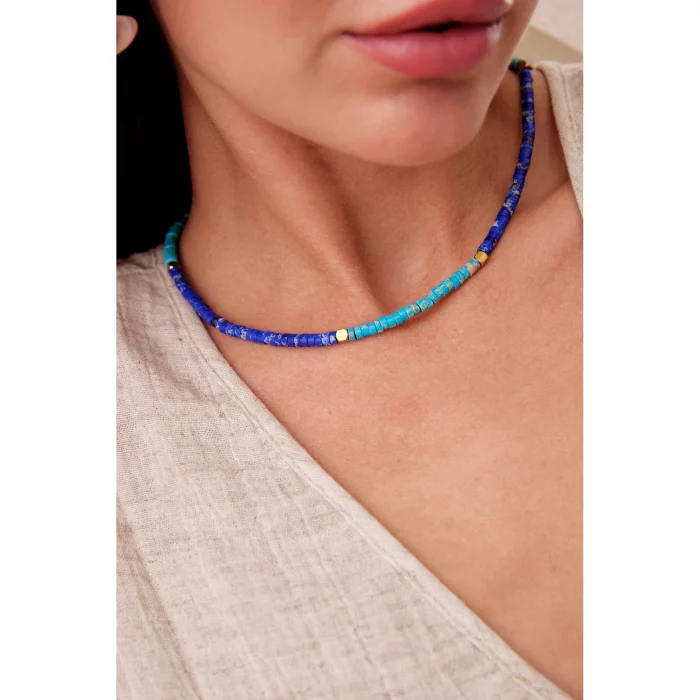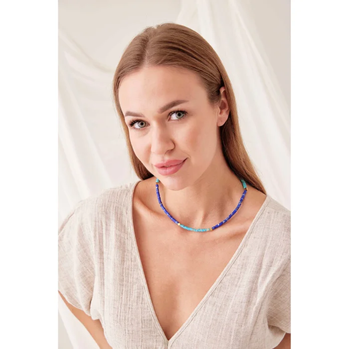 Camilla Necklace; While it allows you to carry the natural energies of varacite stones on you, it adapts to every outfit with its elegant design. It is a perfect accessory for both daily use and to add elegance to your elegance on special occasions. In addition, steel and 24 K gold plated apparatus are used in its construction.