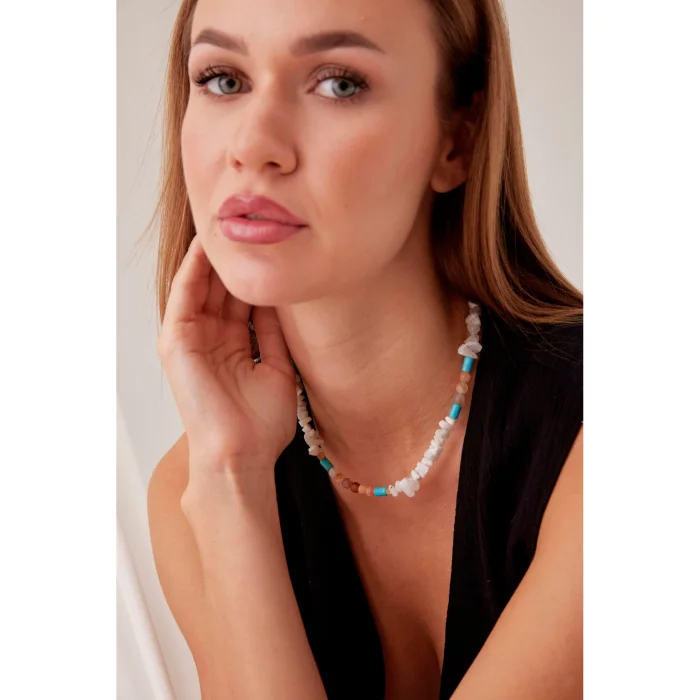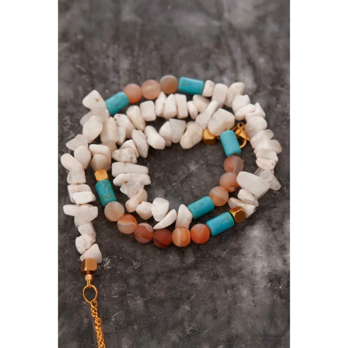 Luna harmonizes with matte agate and moonstone and energizes your energy with turquoise details.