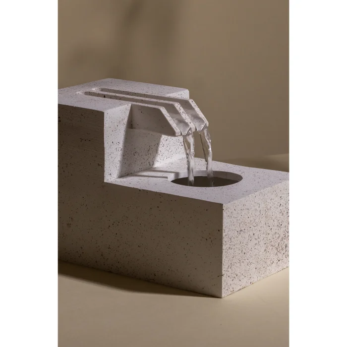 Product Description: Experience the peace and tranquility of nature on your desktop with Tabart's new product "Flow". This unique concrete water waterfall creates a relaxing atmosphere by providing a continuous flow of water thanks to its circulation pump. Easily powered via USB, this waterfall performs perfectly with just half a liter of water.