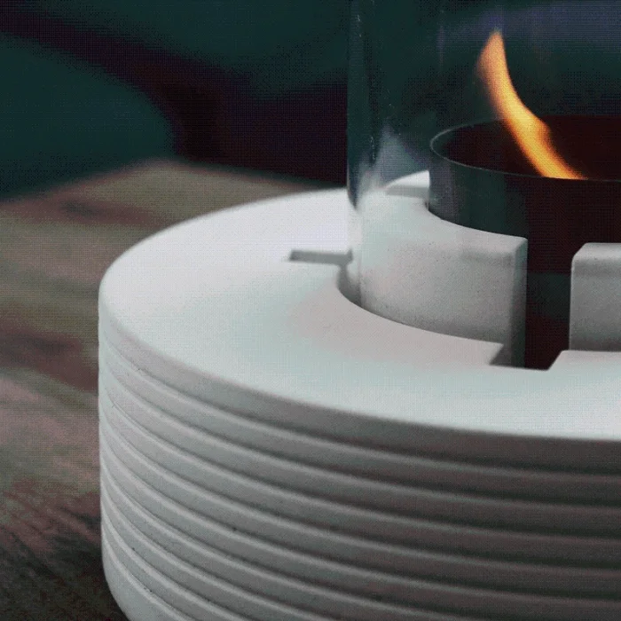 "PURE-Fire was born out of the desire for a clean-burning, safe, transportable, multi-purpose fireplace. Apart from a single purpose of use such as heating, its features such as its mystical effect in the atmosphere, ease of use and portable places of use attract attention. Since the product is produced with a natural element such as concrete, it accompanies a living cycle. The fireplace, which undertakes aesthetic touches with its durable structure of concrete, is designed to easily adapt to the places of use and to carry natural textures to indoor and outdoor spaces such as homes and offices. "