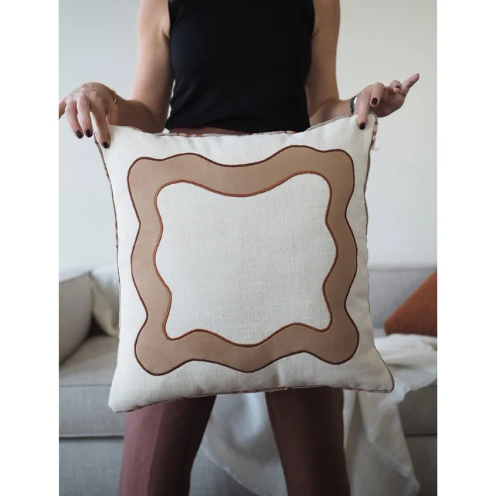 ISAN APPLIQUE ON THE FRONT SIDE. THE BACK SIDE IS PATTERNED FABRIC.